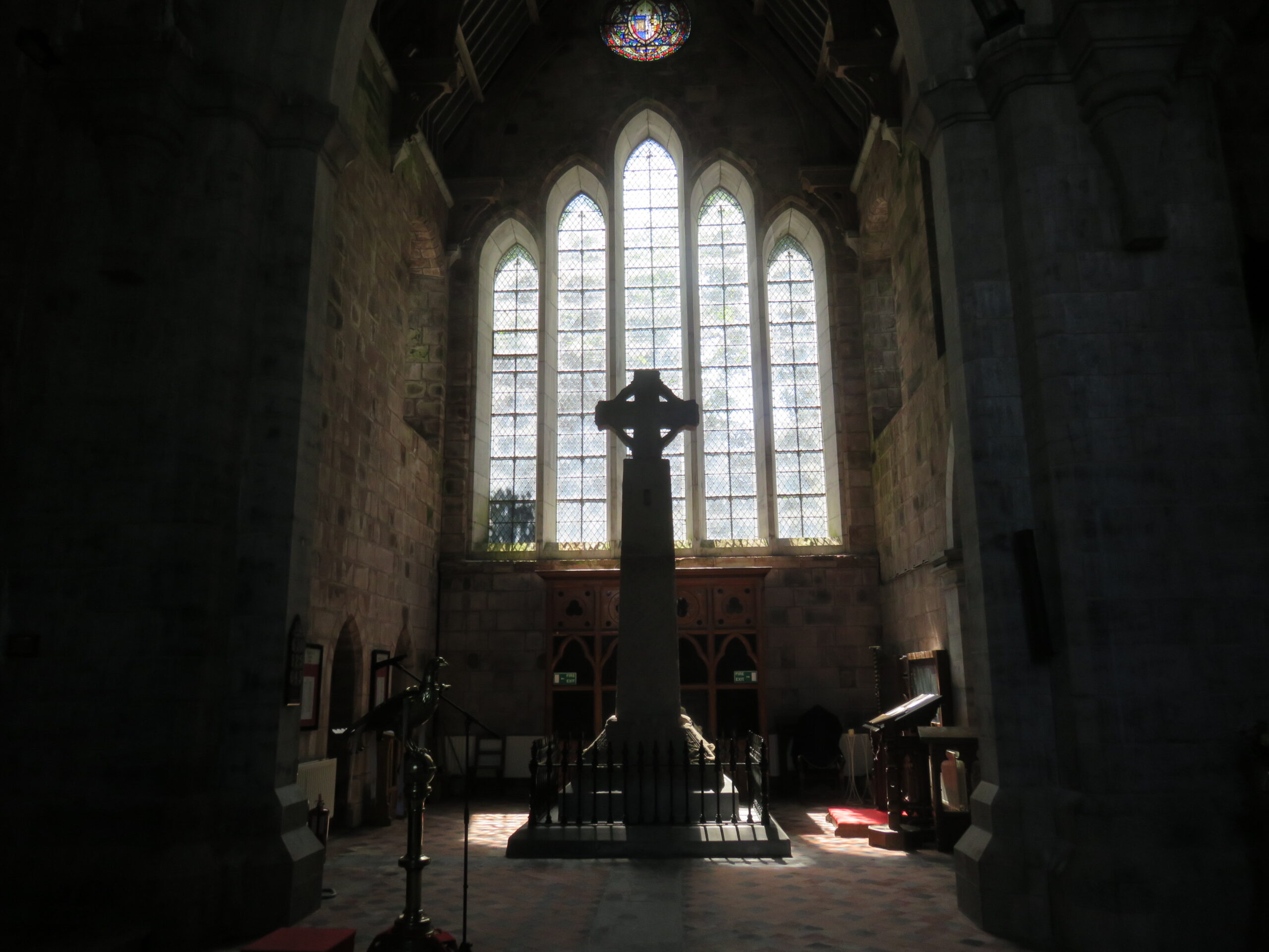 The fragment of another high cross consists of a cross shaft with incised decorations of interlacing spirals, circles, animals and squares of fretwork with the inscription ‘Prayer for the King, for Turlough O’Connor. Prayer for the artificer, for Gillu Christ O’Thuathail’. It is uncommon for an artist to be memorialised, marking this decorated cross-shaft as the work of Gillu C. O’Toole. A second inscription reads ‘A Prayer for the comharba of Jarlath, for Aed O Ossin, by whom this cross was made’. Very similar to the inscription on the Tuam High Cross, indicating both crosses came from roughly the same time period. A further fragment of a cross head shows a ring encircling the head. The head has two perforations, aside from being in four pieces. It has Urnes-type decoration of intertwined animals.