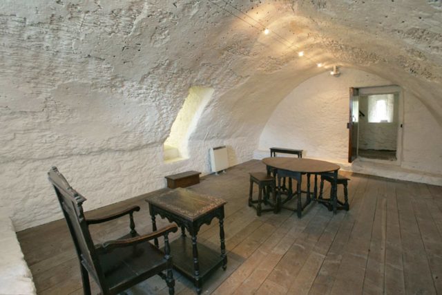 The upper floors are accessed via a steep stone stairs and doorways are low.